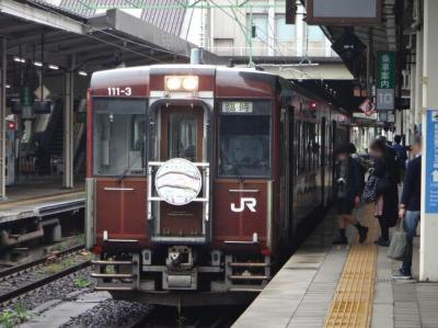 この列車は2020年8月で廃止された観光列車「リゾートみのり」の後継に当たる快速列車ですが、使用車両が通常、陸羽東線で使用されるキハ110系2両編成で車内もセミクロスシートです。そのうち、ボックス席が「指定席」車端部のロングシートが「自由席」として運転されています。指定席料金は530円で、リゾートみのり時代と同額ですが、リゾートみのりは、シートピッチの広いフリーストップ式のリクライニングシート装備だったのに対して、こちらはごく普通のボックスシートでテーブルもありませんのでリゾートみのり時代からサービスの低下は否めません。