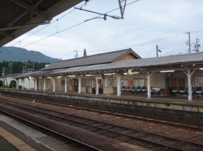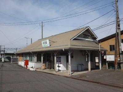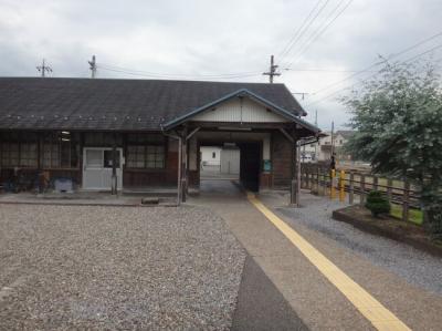 屋根のない棒線ホームと味わい深い木造駅舎で雰囲気は満点。広い構内には貨物ホームもありますがこちらはこの駅からさらに伸びる西濃鉄道の貨物駅。
