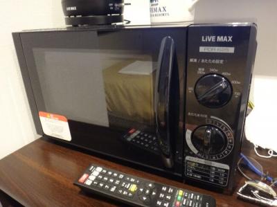 部屋にはリブマックスでお馴染みの電子レンジ完備。これがあるとスーパー総菜も温められるし部屋飲み派推奨です。