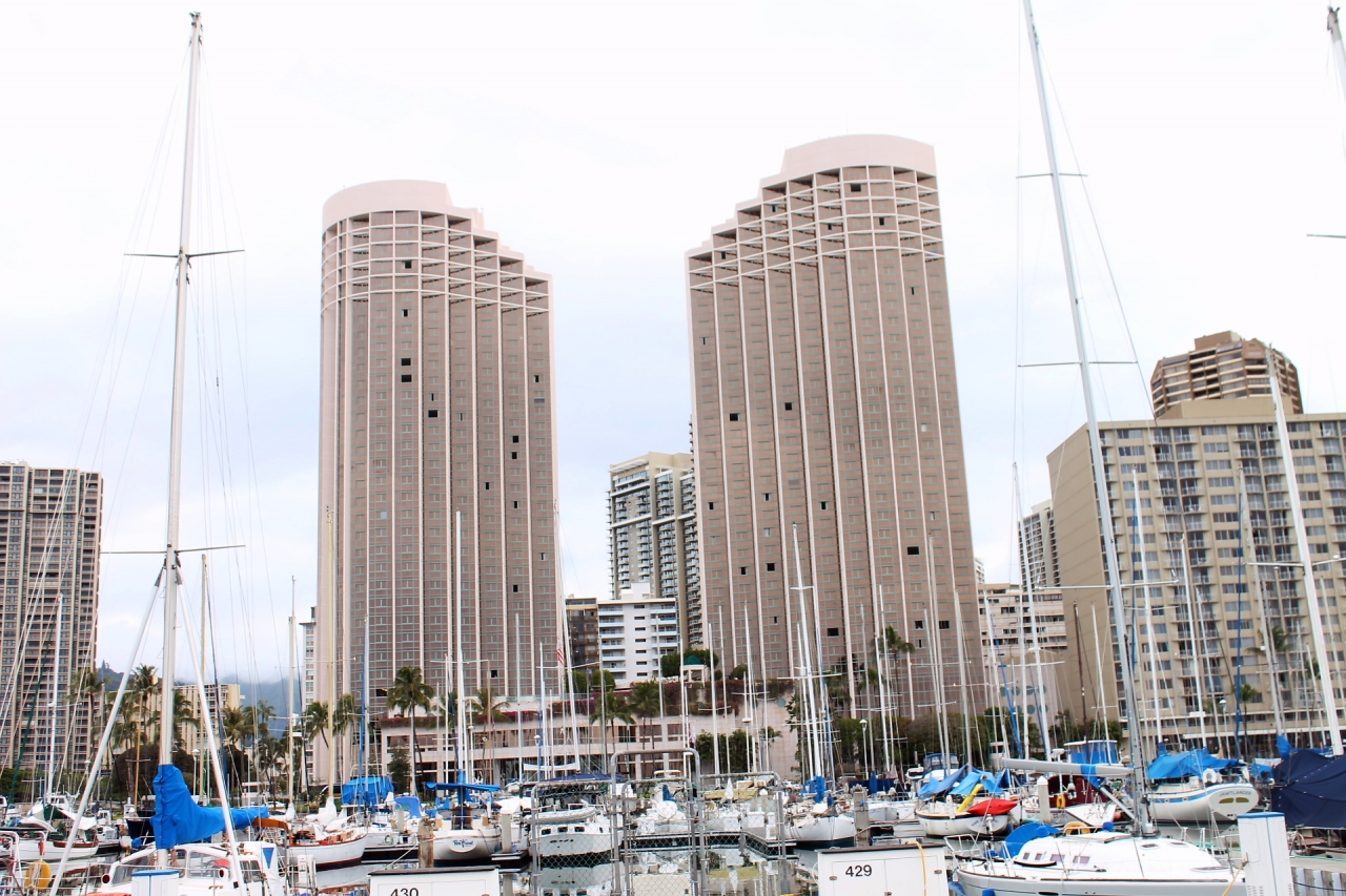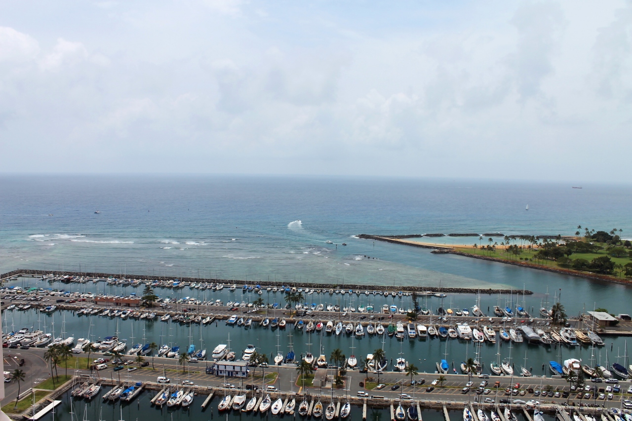 ホテルの南側にアラワイ・ヨット・ハーバーが有って見下ろせ、好い環境にあります。