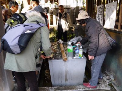 都会の中の神社ですが、井戸から清水が汲み出されていました。コンコンと流れ出る水をペットボトルに入れて持ち帰る人を見かけました。