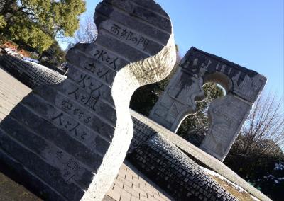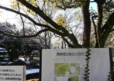 大きなグランド、芝生広場、印象的なモニュメント、日本庭園があり、今回、珍しく雪景色になったので、日本庭園を歩いてみました。雪と日本庭園がとても綺麗でした♪