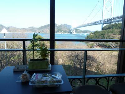 因島大橋記念公園を少し入った所にあります。お目当ては、はっさく大福♪前回夏に訪れた時は、はっさくのシーズンでないからか、たまたまなのか、お休みでした。今回は開いてて、はっさく大福もあり、景色のいい店内でパクリ♪