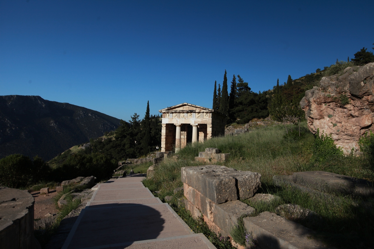 紀元前6世紀を絶頂とし、ペルシャ戦争後更にアレキサンダー大王の庇護もあり、当時の地中海ギリシャ世界(黒海からイベリア半島のギリシャ殖民都市まで)からここに馳せ参じ、祈り、祭り、諸都市の市民達が泊り込みで神託を授かり、交歓し、競技をし、ギリシャ民族の歴史において最高の夢のような時代だったのでしょう。