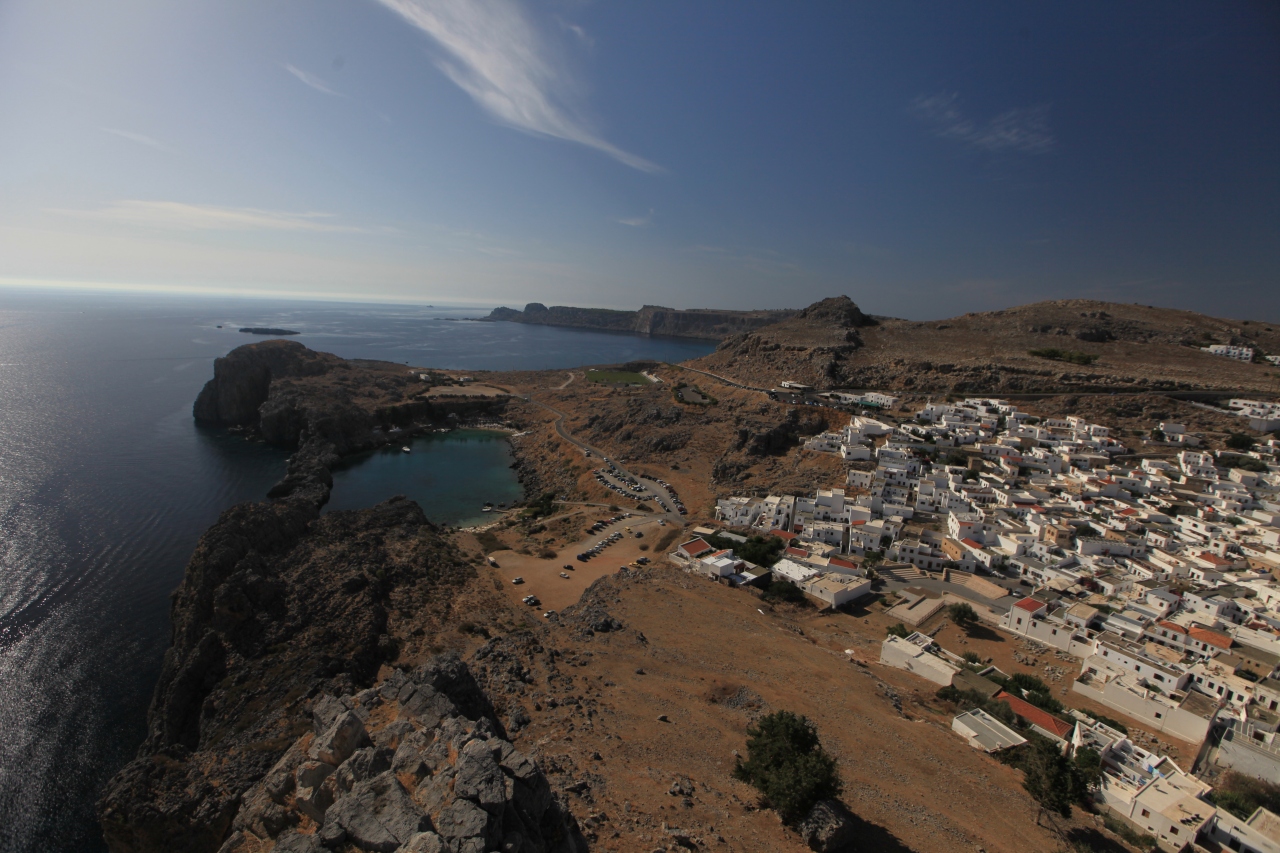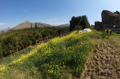 博物館から町への道すがら、眼下の谷を見通すと、はるかにイケアの町と海が見えます。これまで地図を何度も眺め、旅行記を読んでは山奥にあるとばかり思っていましたが、何と古代は地中海世界から船で来て上陸すれば、その日にはここの諸都市の宝庫に泊まれたのでした。