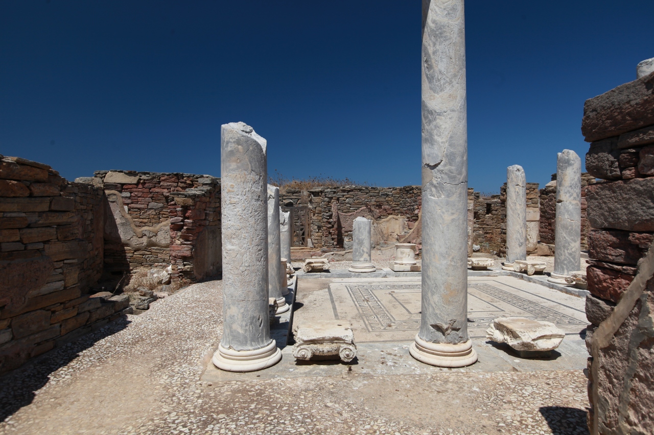 ディロス島は神話にも登場し(「アポロンへの讃歌」)、レトがゼウスの子アポロンとアルテミスを生んだ地と言われているところからも、島の歴史は先史時代にさかのぼり、最盛期はデルフィと同じく、ヘレニズム期とされ、最大人口3万人。