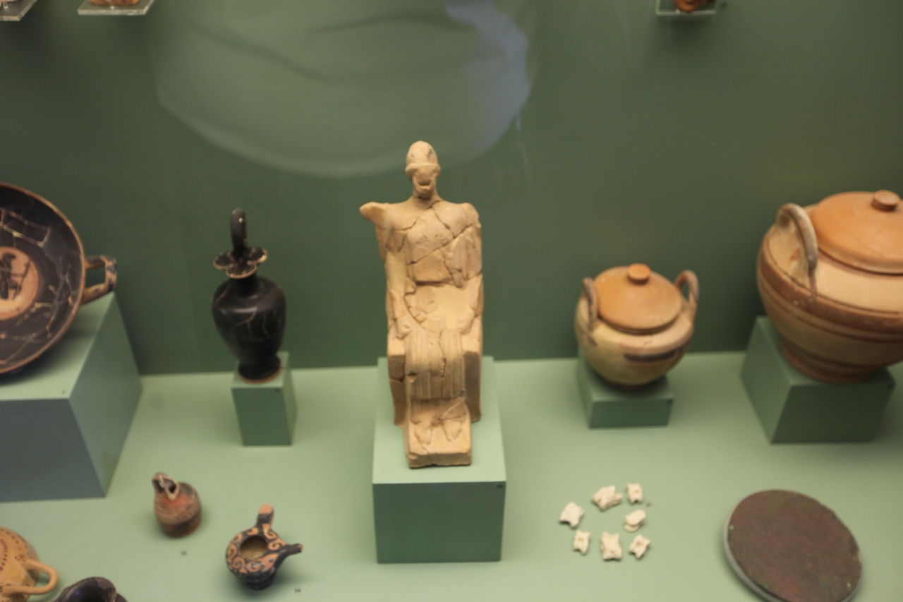 バスでエレステリアス広場まで戻り、その隣の考古学博物館(アテネ国立考古学博物館にはギリシャ全土から集められているが、唯一クレタ島出土品が無く、ここにある。従って、ギリシャ内にある、考古学上重要な出土品全部を見るにはこの2ヶ所の考古学博物館に足を運ぶ必要がある。)へ入る。