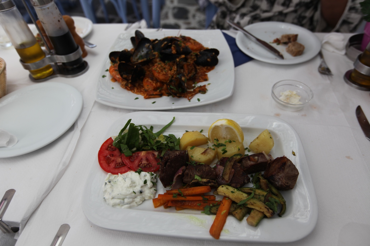 ギリシャは、シーフード料理(リゾット、スパゲッティ)はどこもおいしく、タベルナ、カフェ、レストラン、また値段の多寡を問わず、おいしさが大きく変わることはないですね。エビとムール貝の量の多少で値段が大きく異なることが多いように思います。
