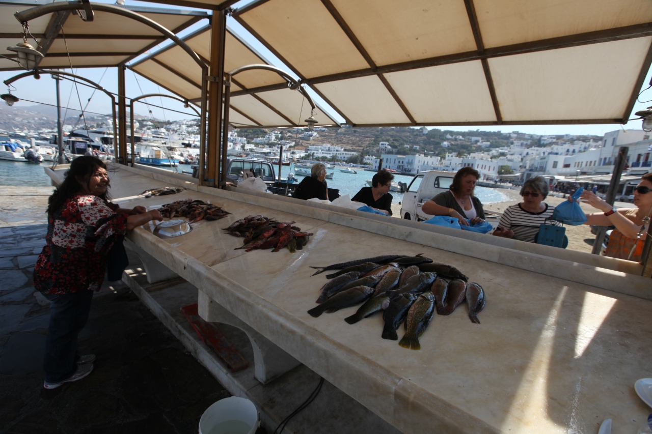 3 ミコノスタウンの魚市場から旧市街に向かって左から二番目のタベルナ