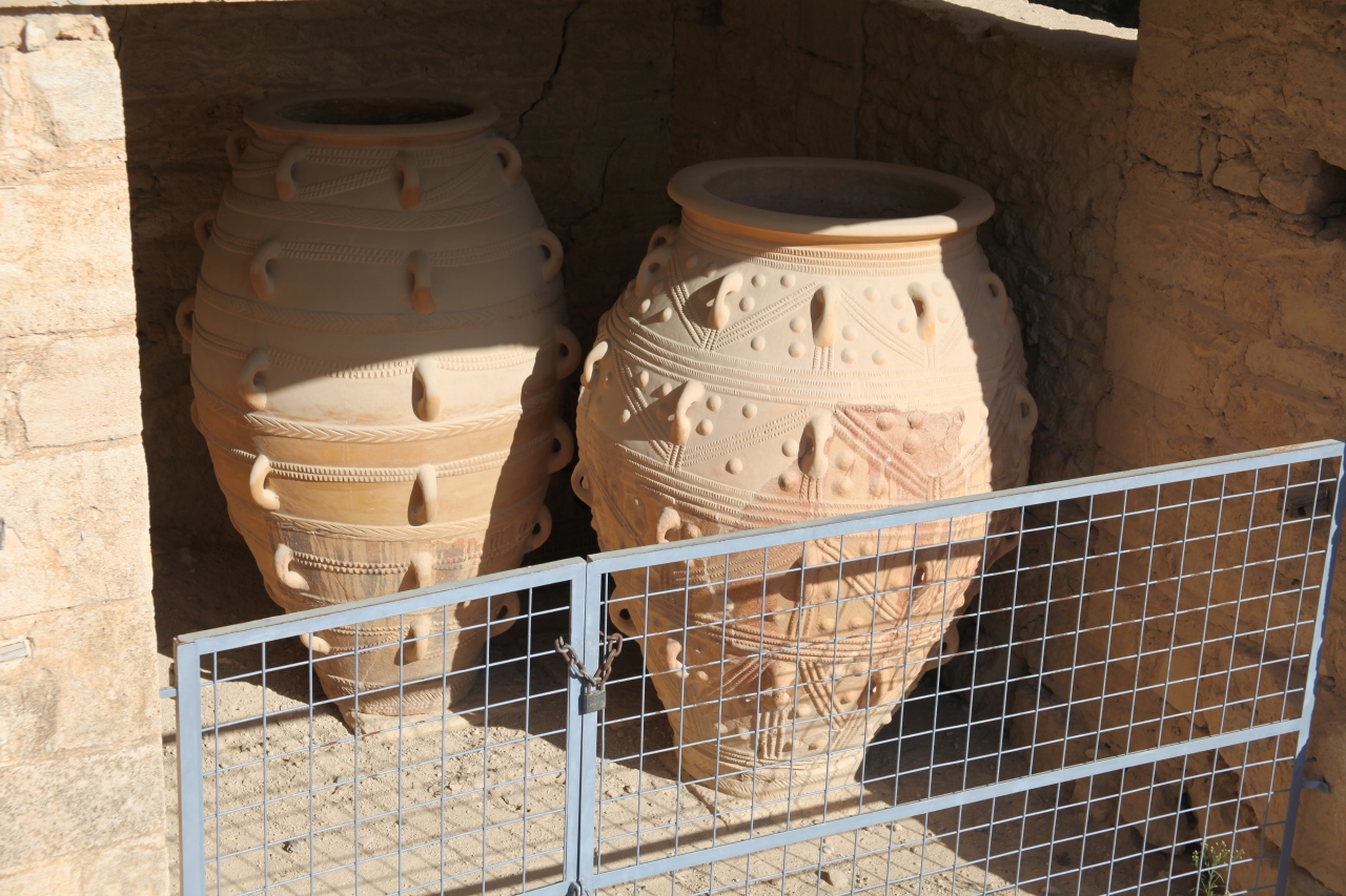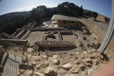 奉納庫(陶製の蛇を持つ女神像や線文字Aが刻まれた粘土板が出土していることからは祭祀と行政が一致していた時代であるとされている。)