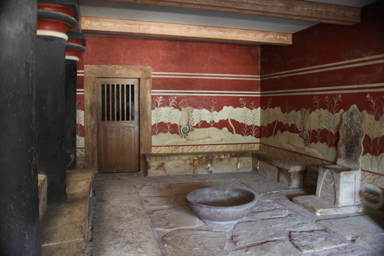 写真の王座の間(玉座背後の壁に描かれている一対のグリフォンは女性を守る図で描かれることが多いことからこの玉座に座って宗教的、もしくは世俗的な行為を行ったのが女性であった可能性が高いとされている。)、