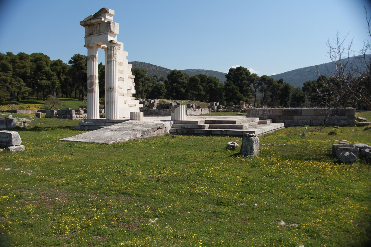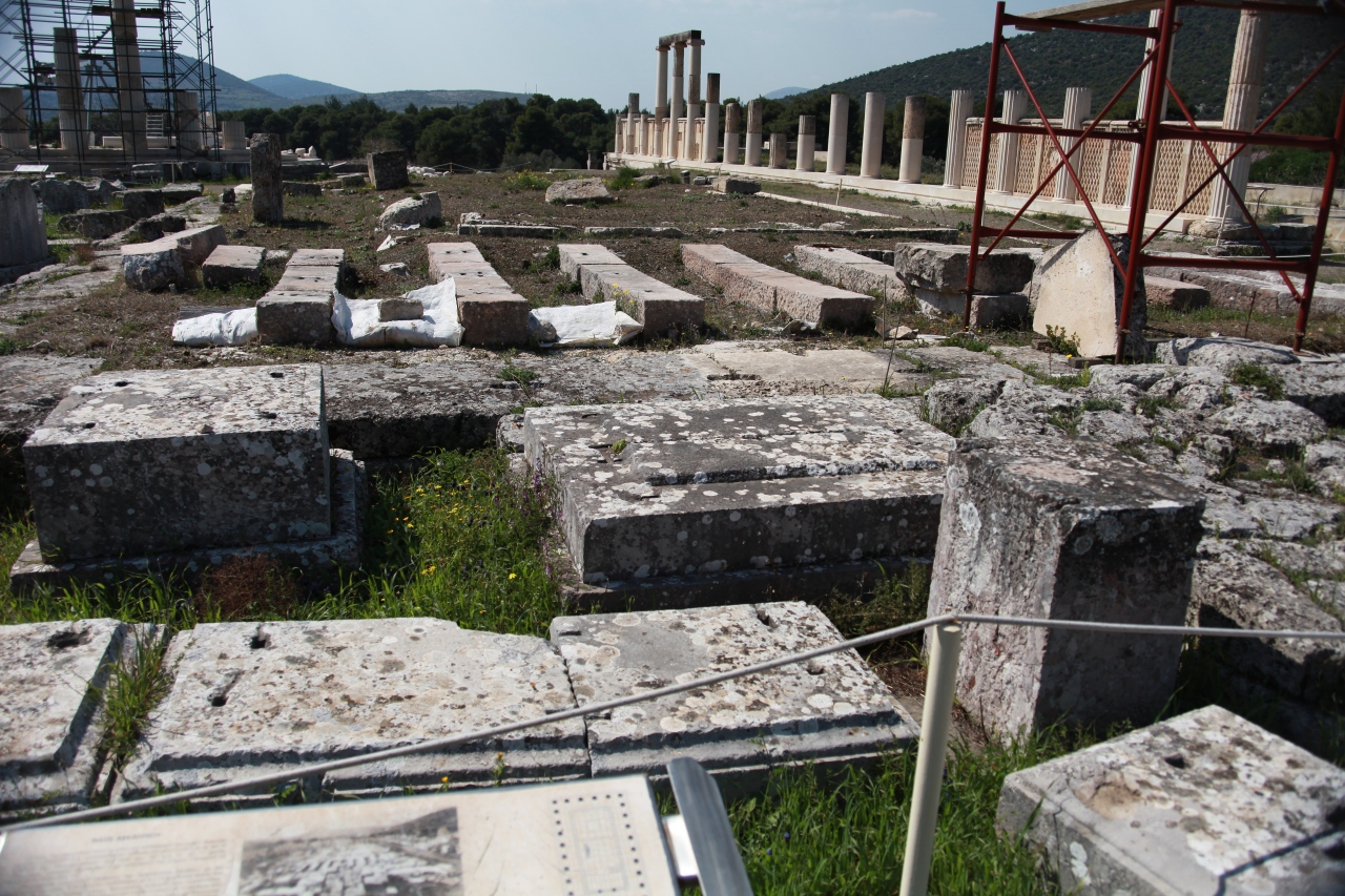 午後アテネから着き、ホテルで午後3時には閉館だという。そこで、博物館から東へ数分の入場規制の無い「アテナの聖域」と「トロス」を回る。トロスは、1995年熊本大学が学術調査をしたところです。