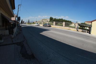 デルフィ村メイン通り中間にある。広々として、谷、海までの眺望。