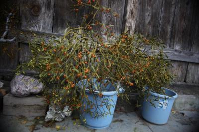 宮城県加美町在住のKさんは、岩手県遠野から一時間山へ入り採集してきて、仙台在住のキリスト教信者に届けています。私は毎年12月薬来山麓にある自宅を訪ねて選んで購入します。写真は黄色と橙色二色の実がなっているめずらしいもので、4,50年たったもののようです。