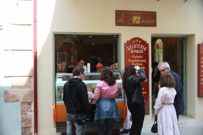 入り口にあるカフェ(なんとも明るいおばさん達がいる。)で、カフェオレ、カプチーノ、アイスクリーム(全部で8.5ユーロ)で休んでいたら、隣席に引率の先生達4人が陣取り、そのうちの一人が私に微笑みかけながらカメラを持ち出し同僚の先生達に自慢している。見るとキャノンEOS5DMARK?。