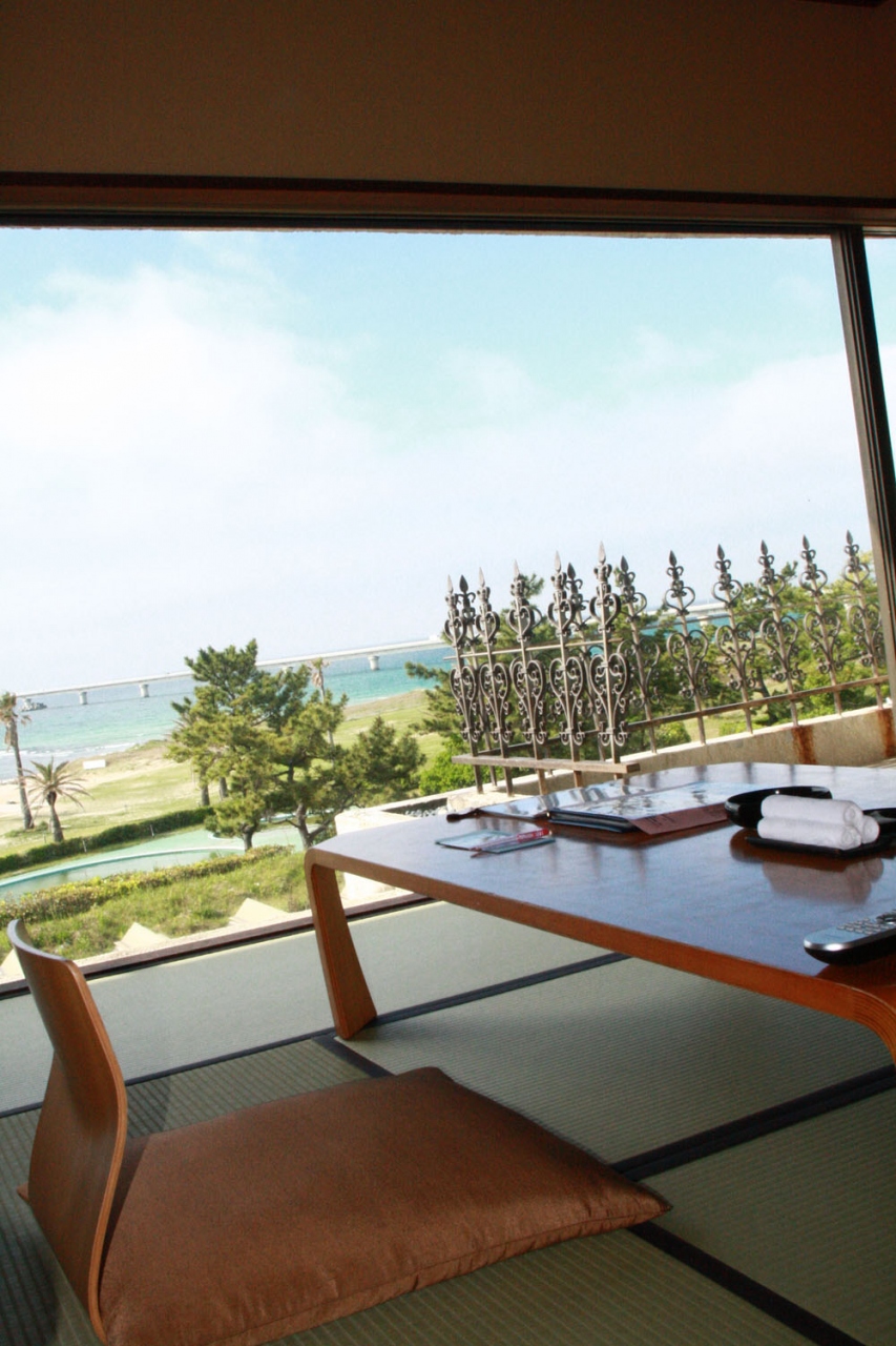 このホテルの一番の魅力は部屋の全面ガラスからみる景色です。海の中をはしる角島大橋が角島まで白く伸び、美しい景観を壊すことなくみごとにマッチしていています。また、前面ガラスから入る太陽光で部屋の中がつねに明るく、子どもがたいへん喜びました。車で下関市街地に移動すれば、海響館や唐戸市場があるので、大人も子供も楽しめます。