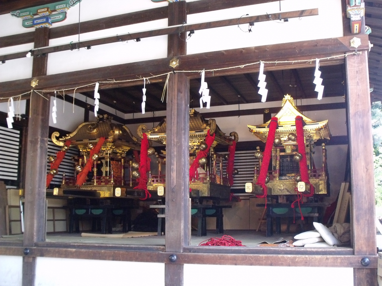 見越しぐらがあかられ定ます。本殿におまいりする間に、そのうち男衆が現れる。御輿は1.5トンある立派なもの。