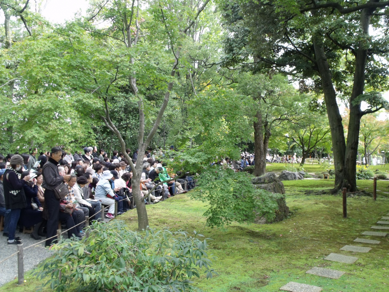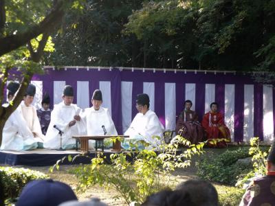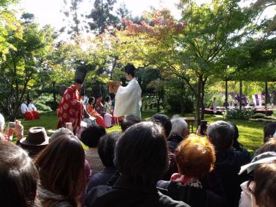 城南宮の曲水の宴は年二回(4月29日、11月3日)行われる、平安時代のそのまま、タイムスリップしたように現代でも行われる。この宴は中国から平安時代に伝わったものとされるが、曲がりくねった遣り水(水路)に酒の盃を流す。流しそうめんならぬ流し酒?