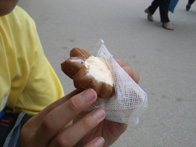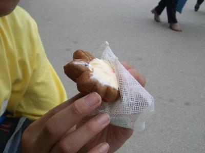 アイスもみじ饅頭を食べました。何種類か味があるようでしたが バニラしか残っていなかったので それをいただきました。アイスというのは珍しいし、暑かったので よかったです。