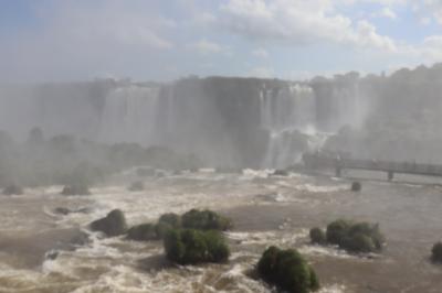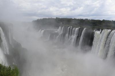 ピースボートのオプショナルツアーで見学。公園入口を入ったら 直ぐ滝が見えてくる。坂を下りながら滝を眺めらる。「悪魔の喉笛」のところで滝の下から見物。水しぶきで濡れる。それからエレベーターで上にあがり 展望所で 全体を眺めた。楽。それから バスでブラジル側を退出しアルゼンチン側に入国。世界3大滝の中で一番の感動。