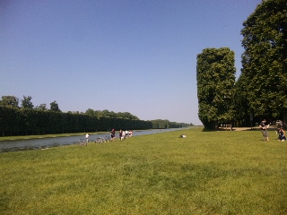 宮殿の見学が1時間少しで 終わったので 庭園の見学に行った。何故か私の行った時は「パリ ミュージアム パス」を見せたが有料ということで 料金支払い。庭園は西洋風の庭園で繊細さはなし。大運河の辺りのカフェも価格が高くてパス。少しがっかり。
