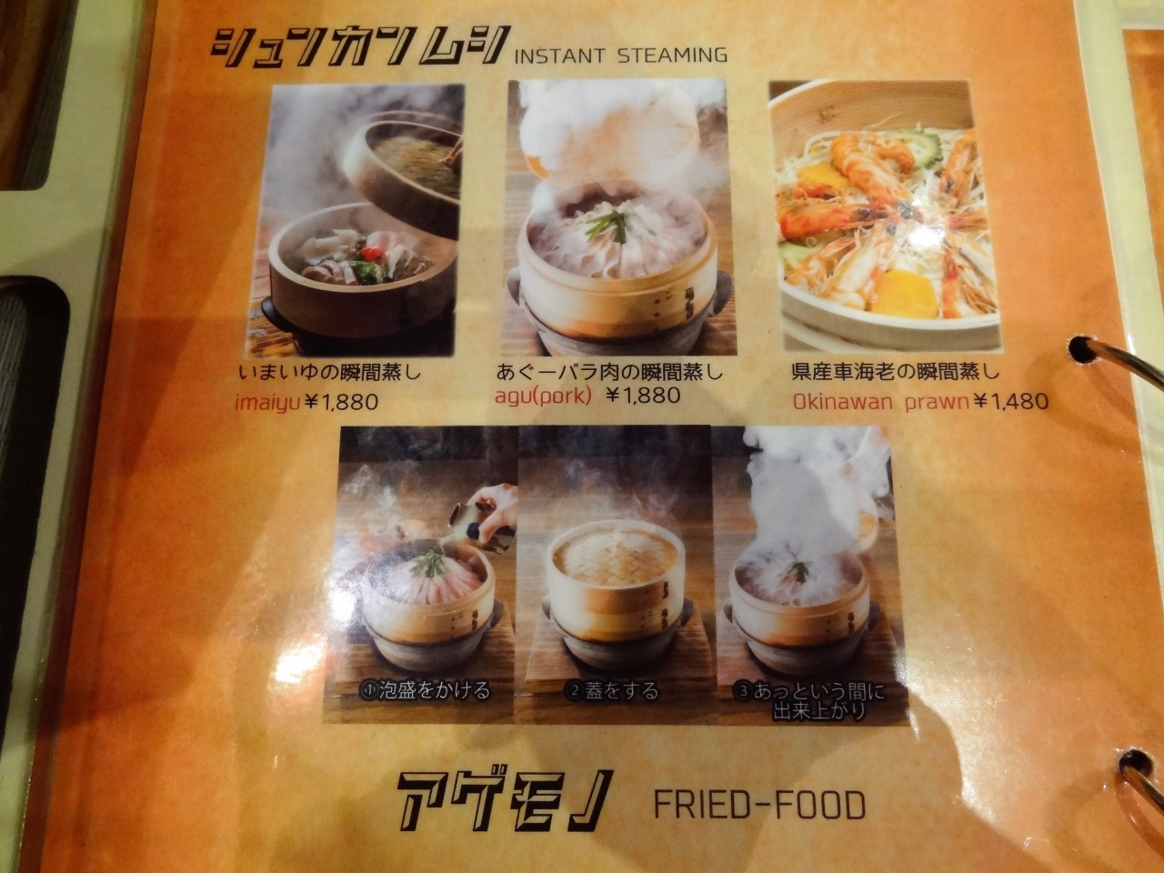 どれもおいしい!私たちのおすすめは、あぐーバラ肉の瞬間蒸しです。