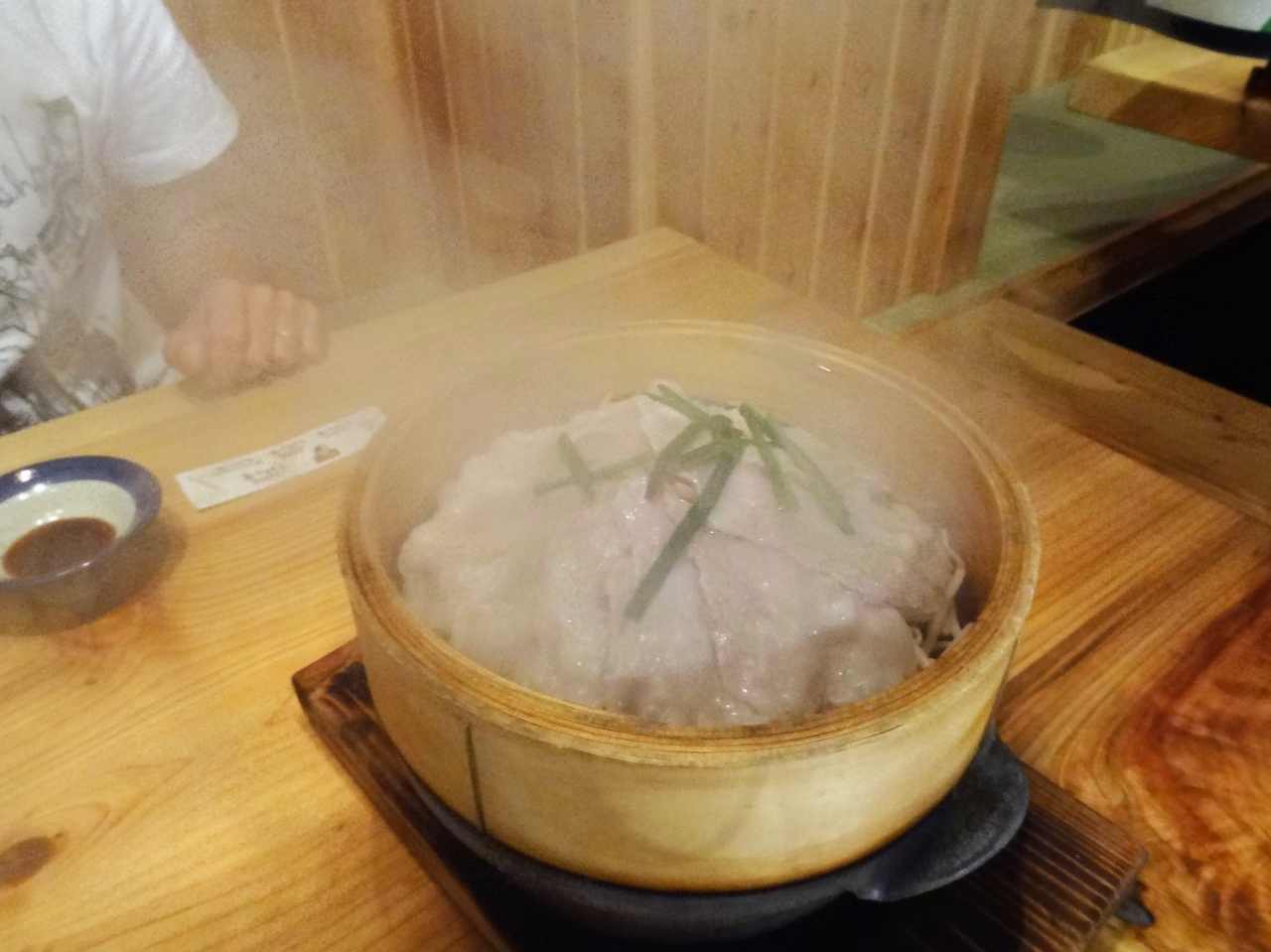 「セイロに盛られたアグー豚に、泡盛をかけて蓋をするとたちまちモクモク湯気が出て、あっという間に火が通る」という見て楽しめる要素があって、しかもお肉が甘くて、お肉の旨味とともに野菜も一緒に食べられて大満足です。