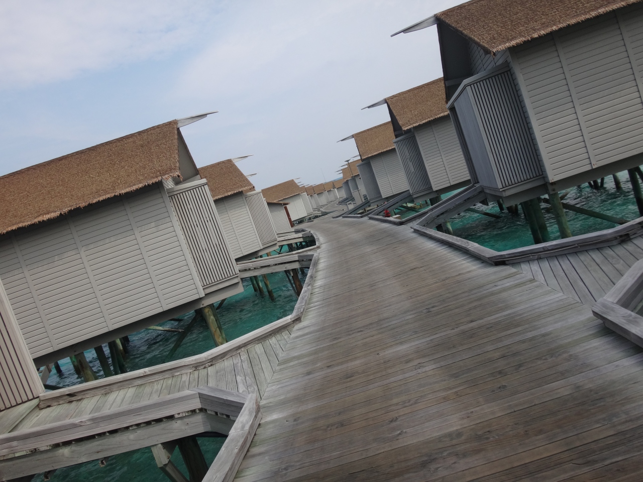 水上コテージは沢山並んでいて部屋までの道は雰囲気に欠けますが部屋に入れば素敵な海が広がっています。- 旅行時期