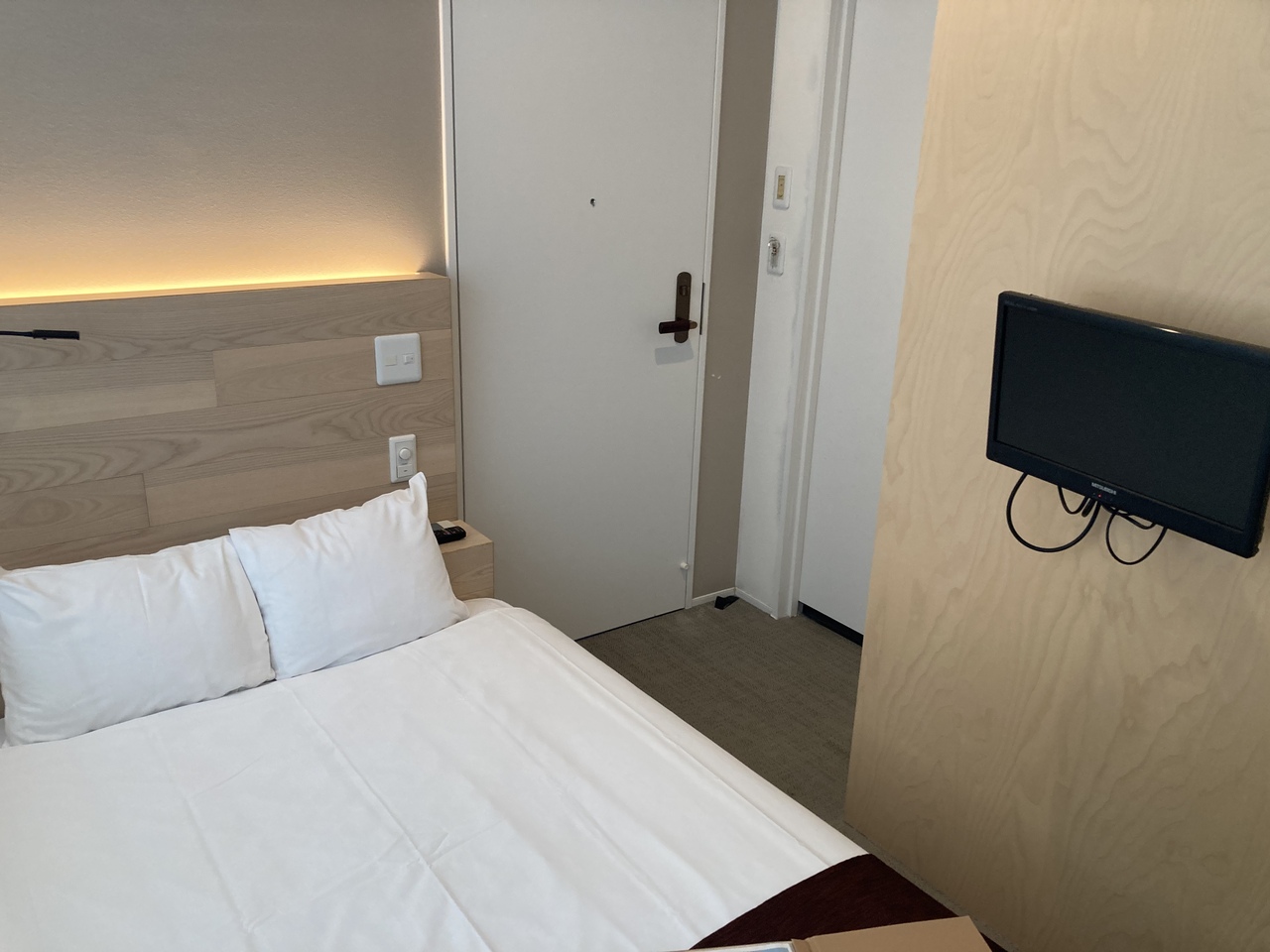 足元と壁も狭いスペースで、そこにテレビが壁掛けしてあり身動きの取りにくい部屋でした。- 旅行時期