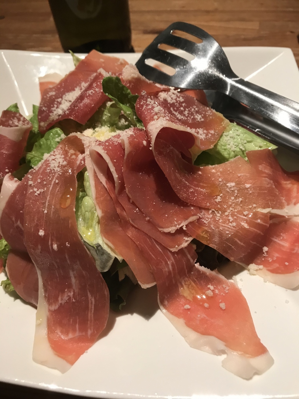水上のハンモセラーノサラダ、ピザと雪の降る中、可愛いく温かい店内で楽しいお食事ができました- 旅行時期