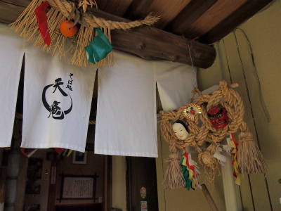入口から高千穂らしい御面が飾られたりしていて素敵。