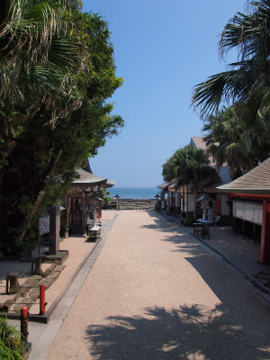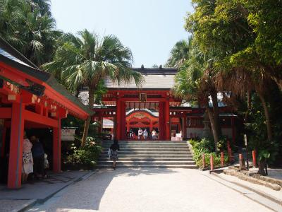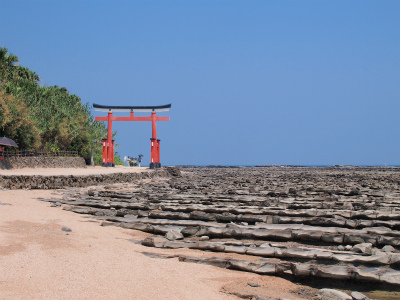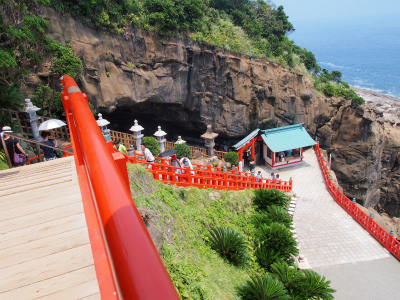 青島神社の真っ赤な社殿と青空とのコントラストが