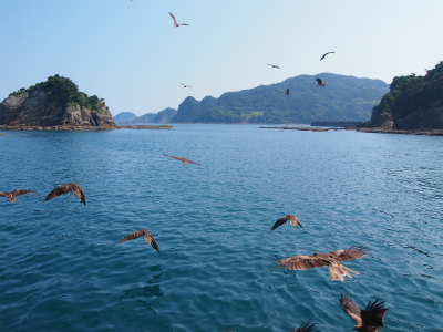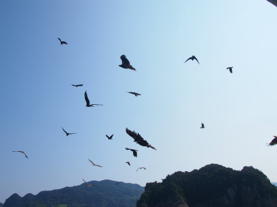 最後に船頭さんがトンビを呼び寄せてエサやりをするのですが