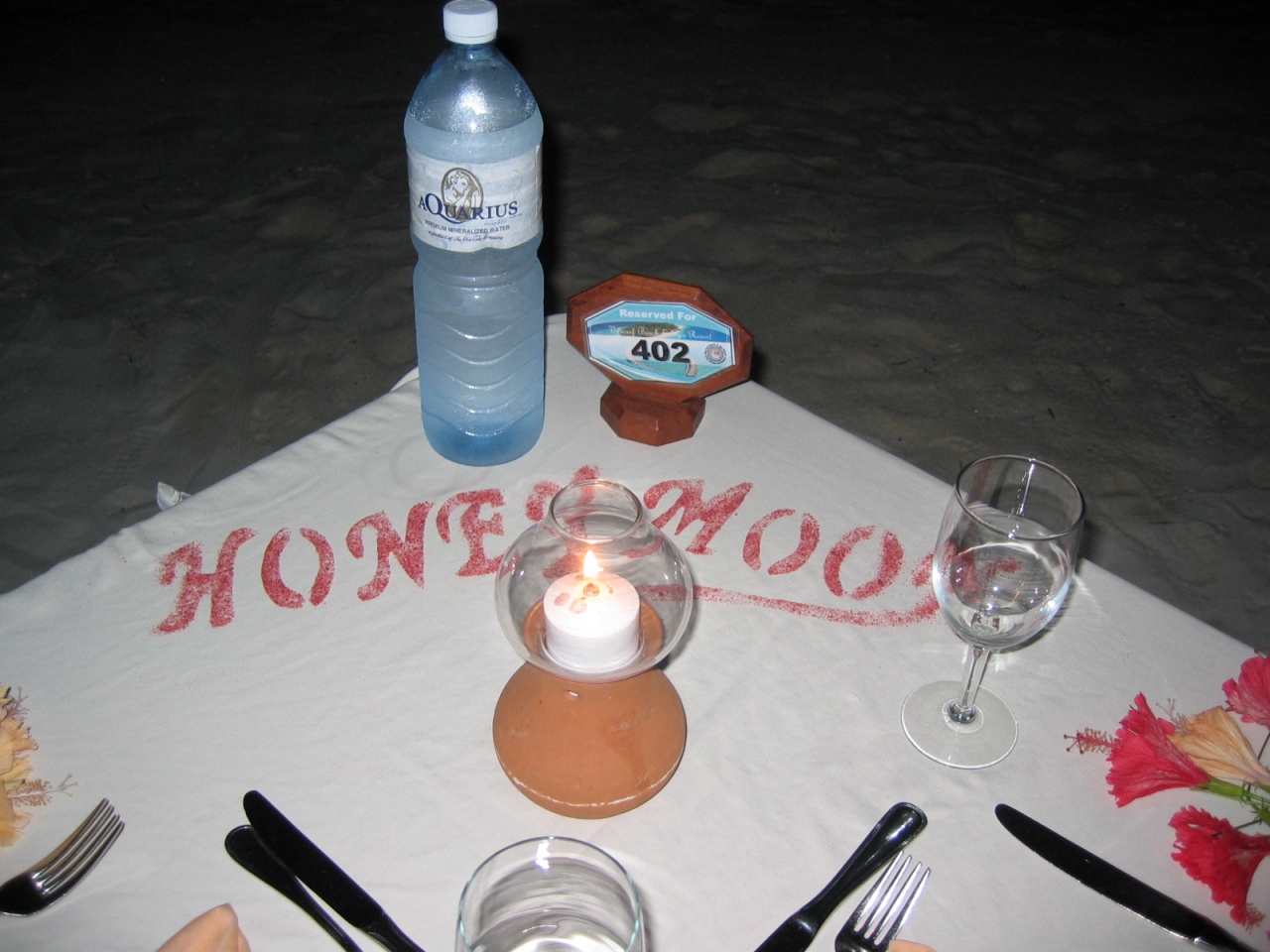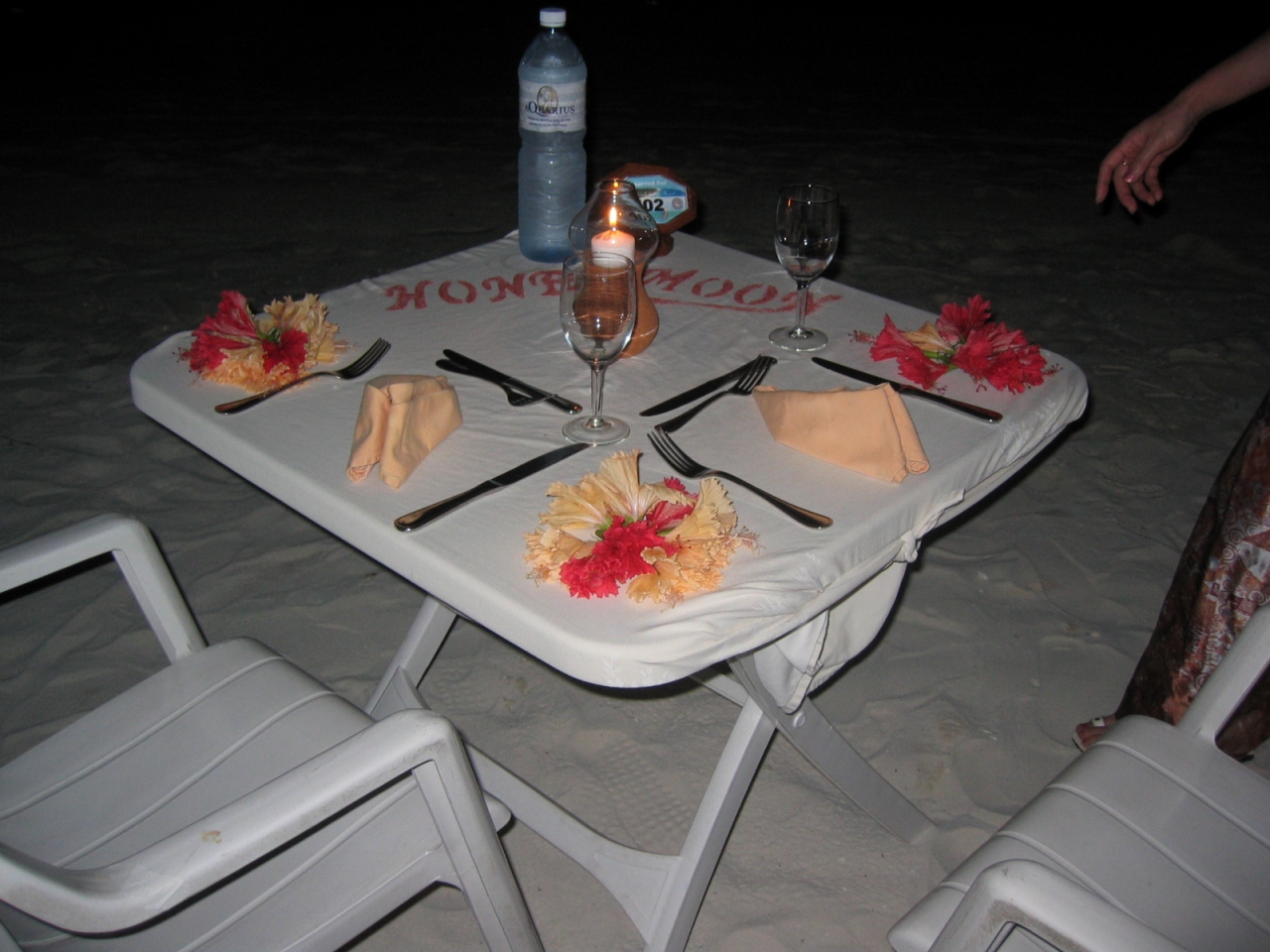 ディナーは1度だけ、なんと私達だけが、たった1組、ビーチで2人きりのディナーでした。キャンドルが美しかった~♪