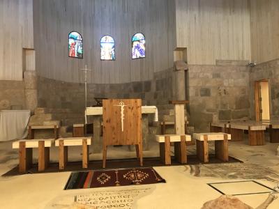 地球の歩き方には掲載されていますが、恐ろしく狭い急な階段を登って、4つの鐘がある上まで行き、そこからの眺望の素晴らしさや、地下の3000年前のモアブ時代の井戸やビザンチン様式の遺跡の中に、礼拝堂があり、見た事の無い雰囲気が漂って居ました。