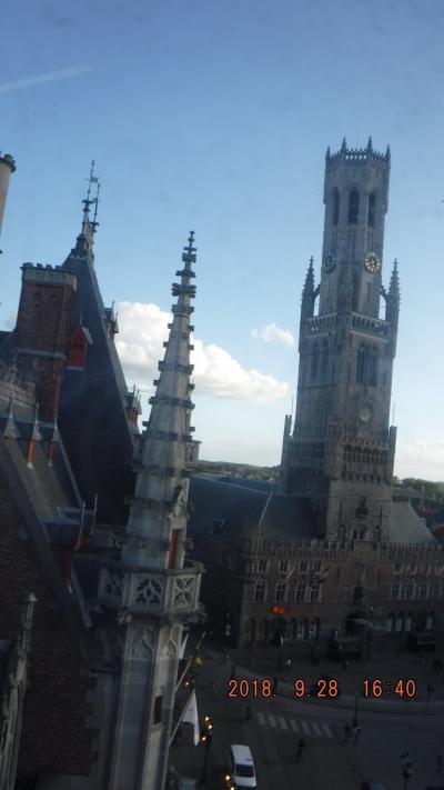 何だかアミューズメントパークと言うか、現代版で15世紀のブルージュにタイムスリップさせてくれる映像体幹が出来る場所のようですが、私達は「兎に角登りたい!」と言う事が先立ったので、時間的にも両方は体験出来ない時間だった為、塔への入場券だけ買い求めました。地球の歩き方によると、以外と面白い体験が出来そうな、日本語でも説明の聞けるような所らしいですが???塔には人数制限ありで、前の人達が降りて来て、やっと登れました。入場料は12ユーロだったかと思います。(歴史博物館のほうにも入るともっと高いです)