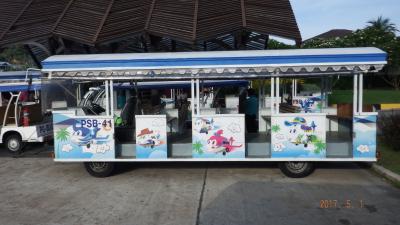 空港到着時には、可愛らしい遊園地の電車のような送迎バスに乗せられて、ターミナルに入ります。- 旅行時期