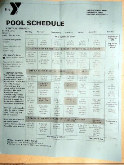 日本でいつも泳いでいるため、オアフ島で競泳プールを探していましたところ、YMCAが利用できるとコンシェルジュの人に教えていただきました。