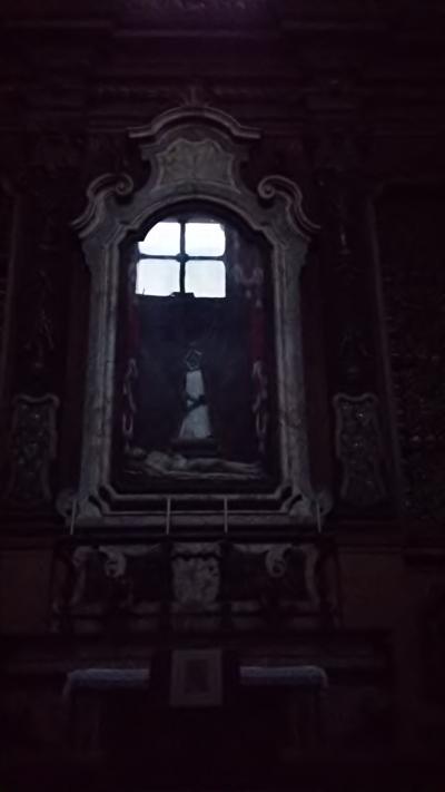 入ってすぐには普通の礼拝堂があるのですが、左手通路を入っていくと真っ暗な礼拝堂につながっています。