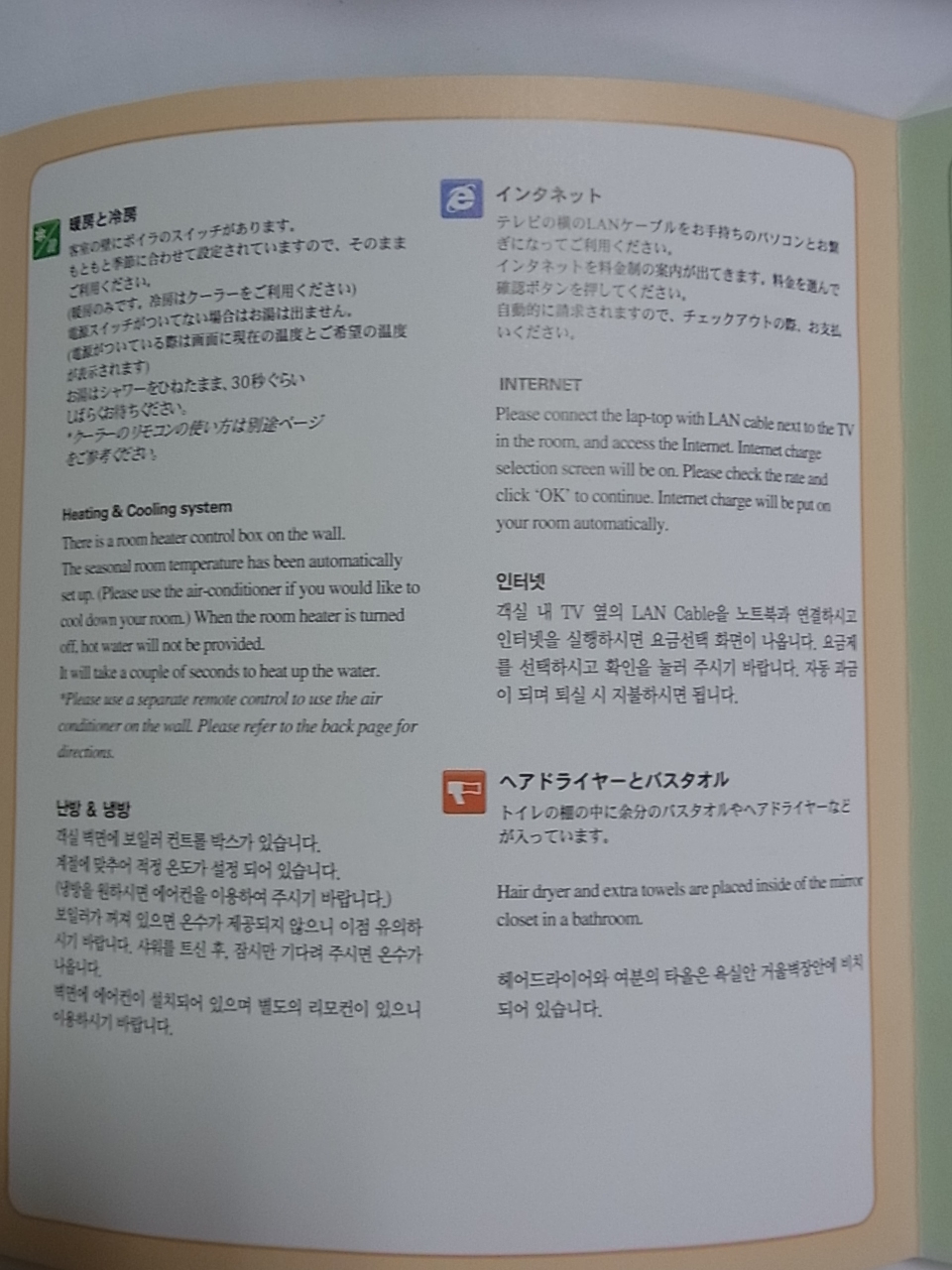 一人部屋だったので狭かったですが、一人だと十分です。