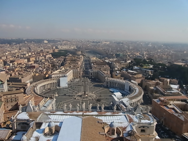 ヴァチカン市国の美術館でシスティーナ礼拝堂を見た後、図書館などには行かずに右の出口を出ると、そのままサン・ピエトロのクーポラに登れます(並ばずに)。美術館を最後まで見て外に出てしまうと、再度セキュリティーチェックを受けないといけないため、長蛇の列に並ぶことになります。