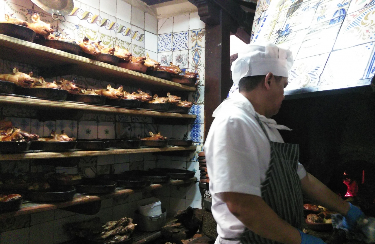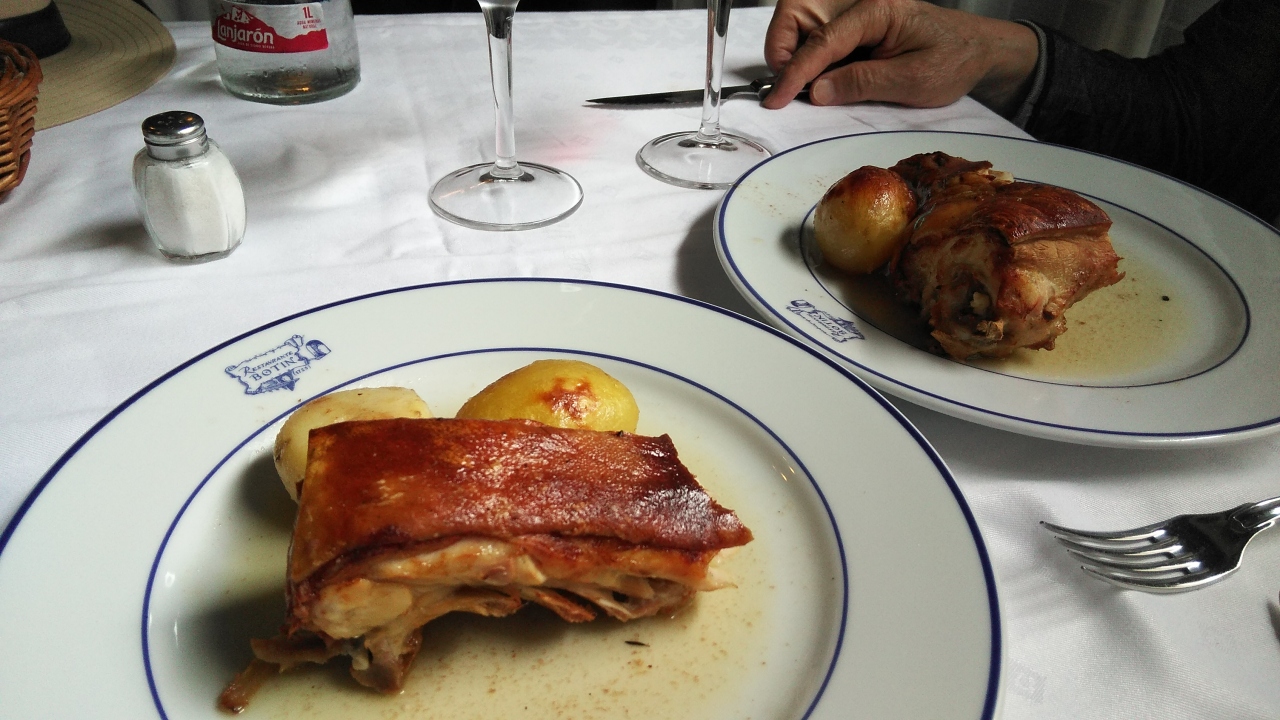 子豚の丸焼き食べに行きました。お店が小さいので探すのが大変でしたがサンミゲル市場の直ぐそばでした。世界一古いレストランだそうですが、そうだな~~!昔は焼くだけだったのかなとおもいました。