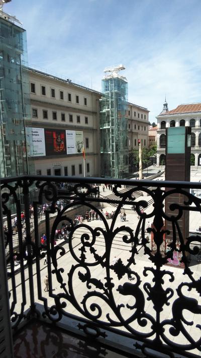 吐き出し窓とベランダがついて下の広場はソフィア王妃芸術センターに面しています。