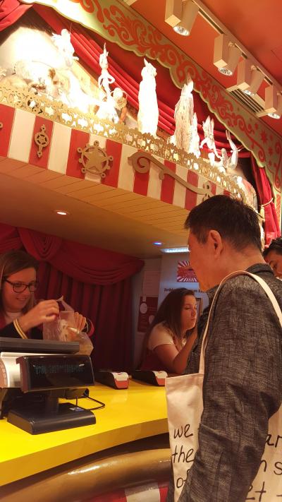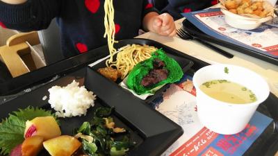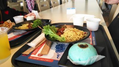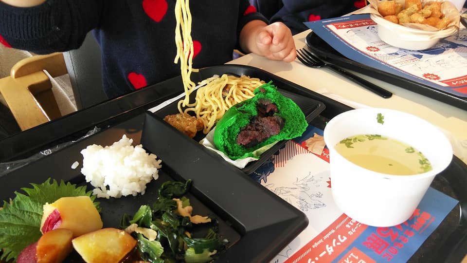 ランチは7階展望台レストランで戻りの地球アンマンや青い地球肉まんが人気でした。