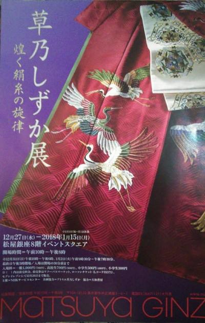 年末に訪れた銀座松屋の8階で刺繍作家草野しずかさんの展覧会がありました。