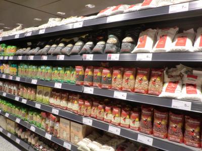 家族やお土産にはこの地下にあるスーパーの食品がいちばんよいです。真空パックになっているし品ぞろえも良い、ボスケリア市場の物より品物も良いように感じます。