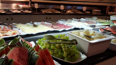 朝ご飯も種類も豊富シャンパンも出ます。夕食は27ユーロでいただけますし、エクスぺデイアで申し込んだら飲食10%割引がありました。
