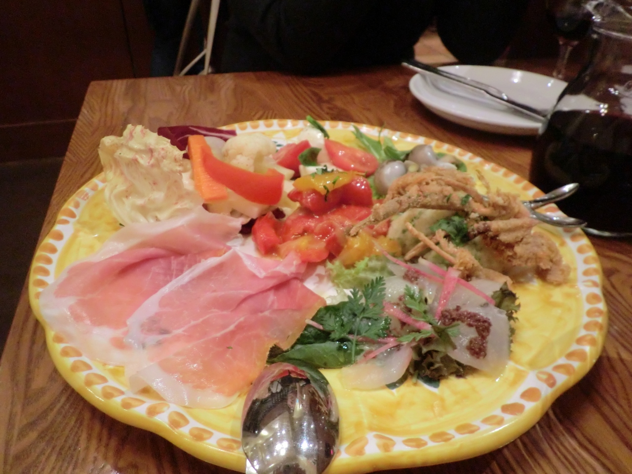 夜は前菜盛り合わせにワインを飲んでピザを食べます。シニアにはメインまでは重すぎますので。- 旅行時期