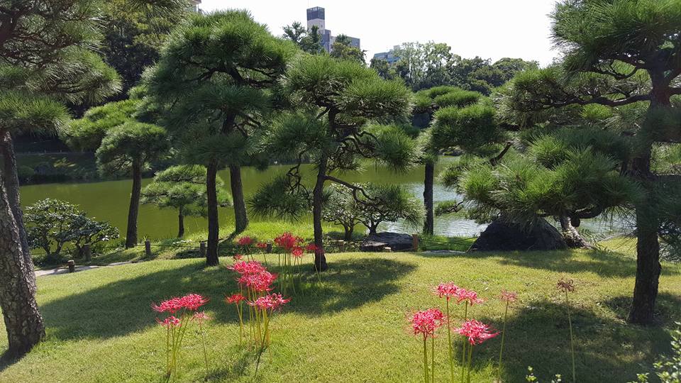 目の前には朱塗りの階段があります、此方はギャラリーに行けます。5階に日本庭園と喫茶室がありました。