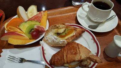 フルーツのは行ったクロワッサン、カフェはお代わりもできます。パフェはアイスにmarronが乗ったもの。くりの量が少ないな~~!